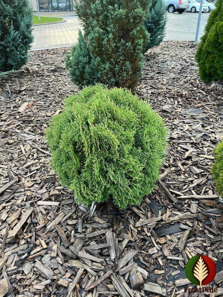 Карликовый, медленнорастущий сорт западной туи с плотной шаровидной кроной и насыщенно-зелёной хвоей, идеально подходит для рокариев, бордюров и контейнерного озеленения.