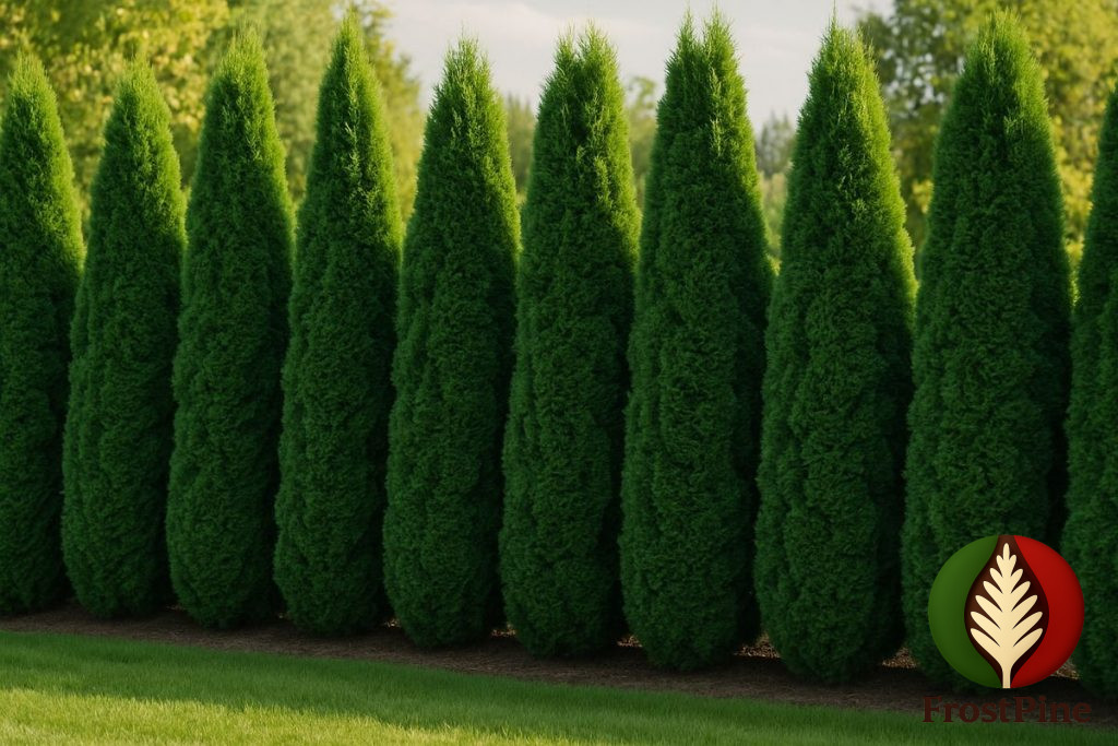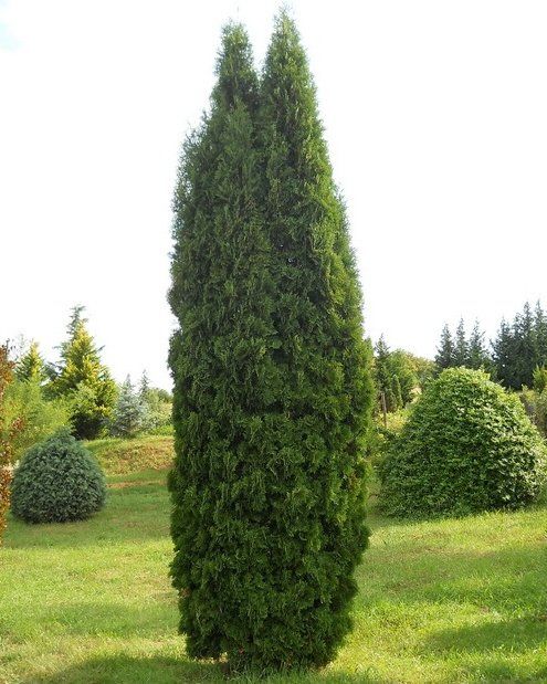 Стройная колонновидная туя с плотной густой кроной и насыщенно-зелёной хвоей. Идеальна для создания живых изгородей, аллей и вертикальных акцентов.