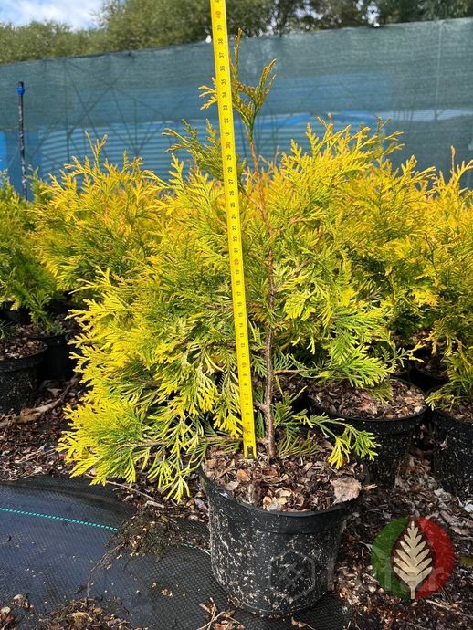 Туя западная ‘Санкист’ — эффектный вечнозелёный кустарник с ярко-золотистой хвоей, сохраняющей насыщенный цвет круглый год. Этот сорт отличает плотная, пирамидальная форма кроны, аккуратный внешний вид и неприхотливость в уходе. Благодаря устойчивости к холоду и универсальности в посадке, ‘Санкист’ идеально подходит для оформления садов, живых изгородей и декоративных акцентов на участке.