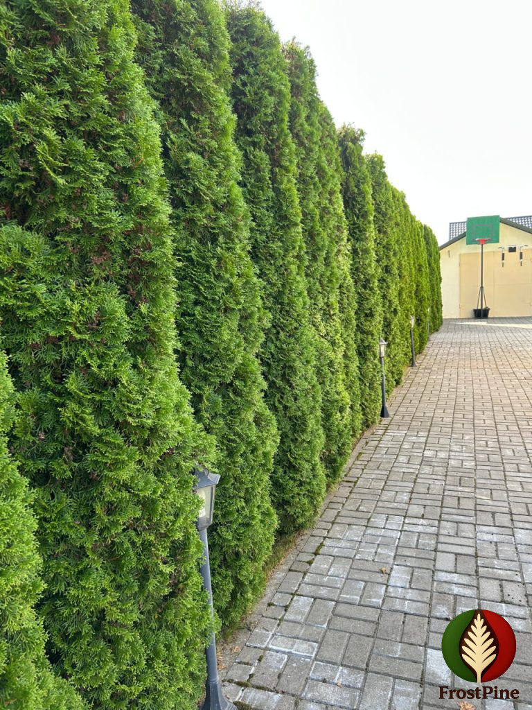 Туя ‘Смарагд’ универсальна в применении. Её часто используют для создания живых изгородей, так как растения образуют плотную зелёную стену, сохраняющую форму без подрезки. Благодаря медленному росту и густоте хвои, такие изгороди выглядят аккуратно и не требуют сложного ухода.